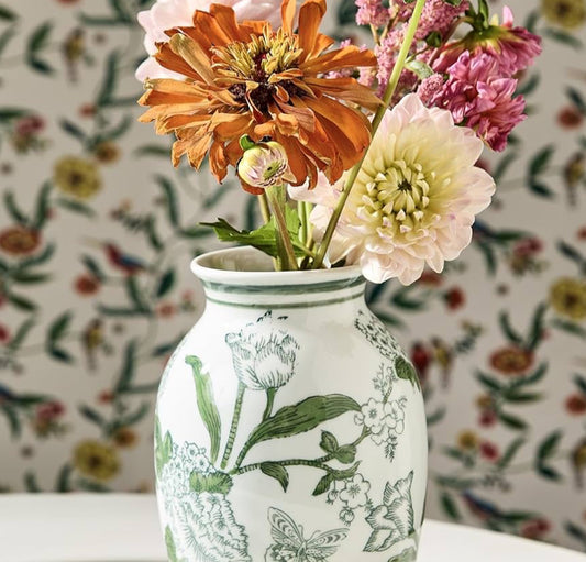 Primrose and Lotus Chinoiserie Vase 8.5”