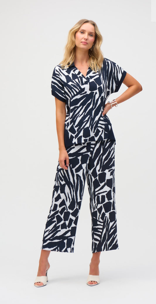 Silky Knit Abstract Print Top-Navy/Vanilla