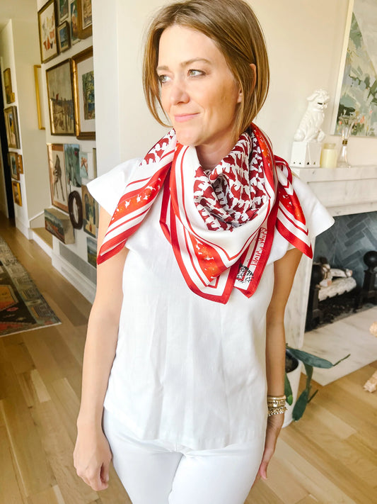 Sold outSilk Scarf - Red Pigs