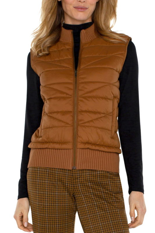 Sleeveless Quilted Full Zip Sweater Vest-Tumeric