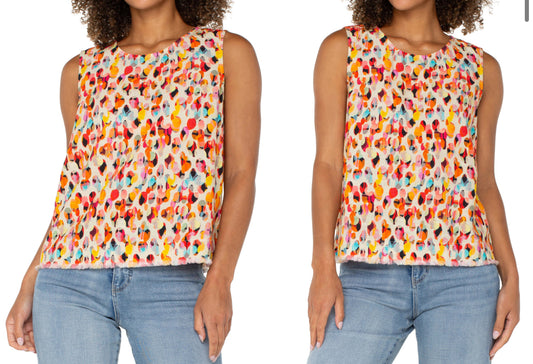 Sleeveless Button-Back Frayed Top