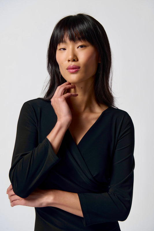 Three-Quarter Sleeve Wrap Dress - Black