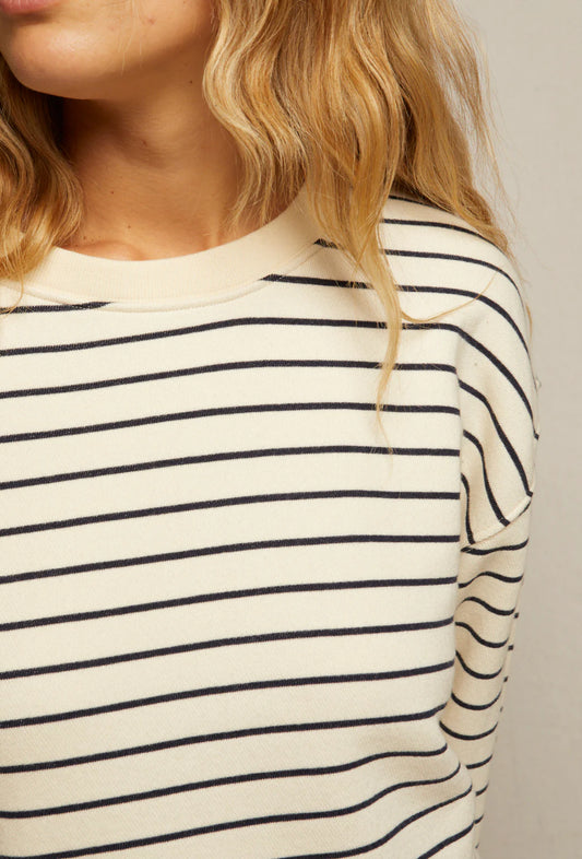 Tyler French Terry Pullover-Navy/Natural Stripe