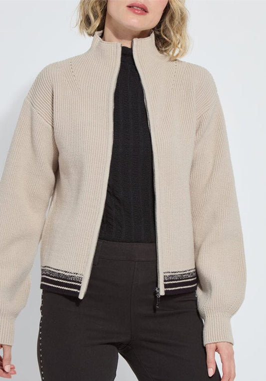 Blythe Zip Up Cozy Rib Sweater-Beige