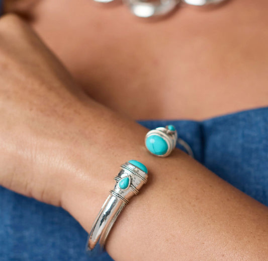 Cannes Demi Cuff-Silver with Turquoise