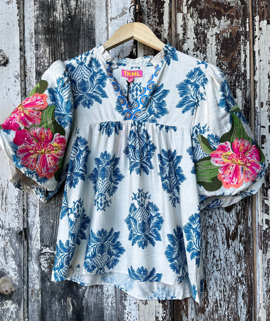 Sold outEMBROIDERED DOUBLE LAYERED GAUZE TOP