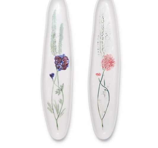 Artisanal Long Tidbit Plate with Imprinted Botanical Design