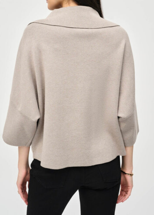 Jacquard Sweater Knit Cowl Neck Top - Vanilla
