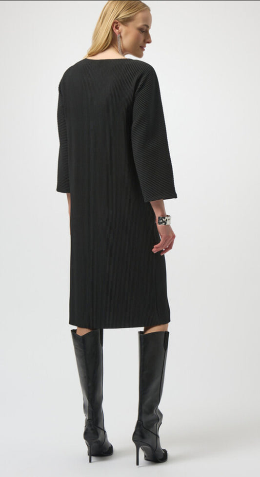 Pleated Shift Knee-length Dress-Black