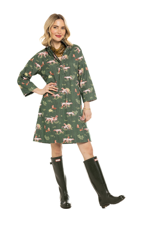 Arden Dress-‘Dogs on the Hunt’ Cord Dress-Green