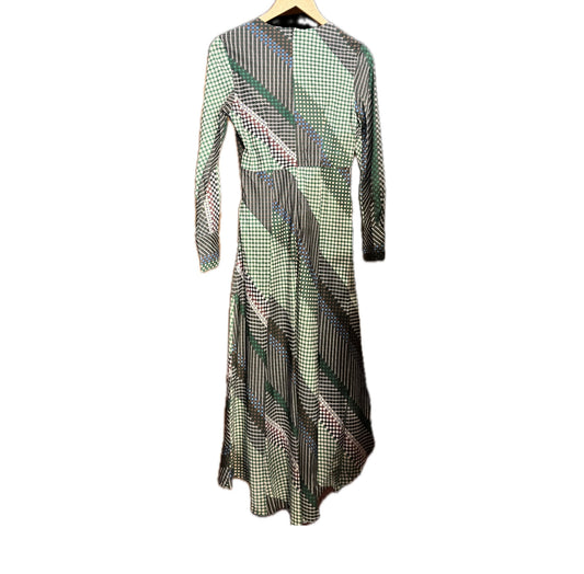 Stripe Print Twisted Front Dress-Green Multi