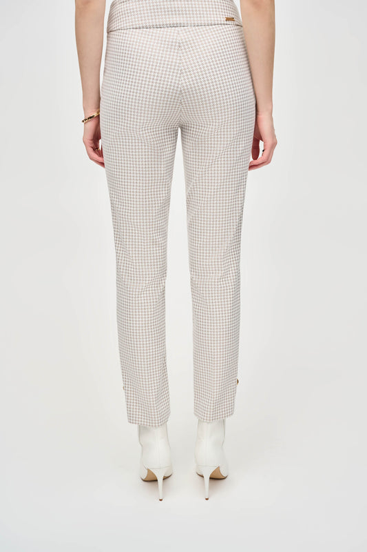 Houndstooth Jacquard Slim Fit Pants - Beige
