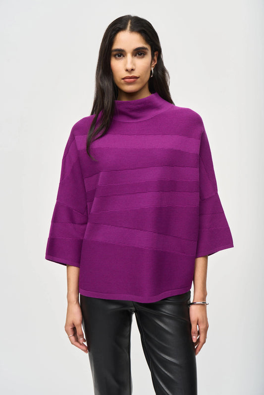 Jacquard Sweater Knit Cowl Neck Top - Vanilla