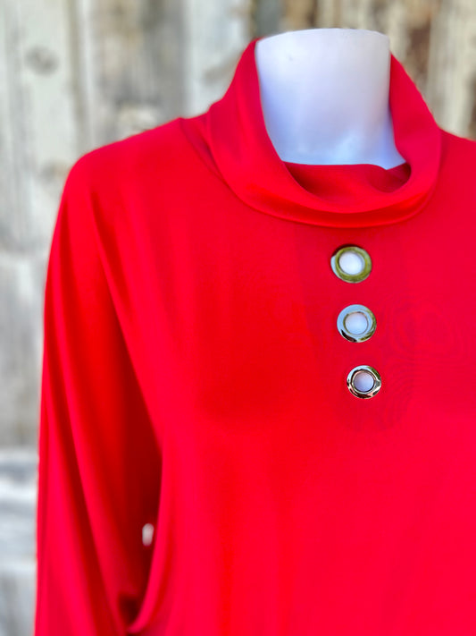Silky Knit Boxy Top With Eyelets - Lipstick Red