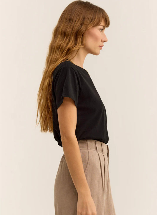 Chiffon Pleated Top With Ruffled Sleeves - Black