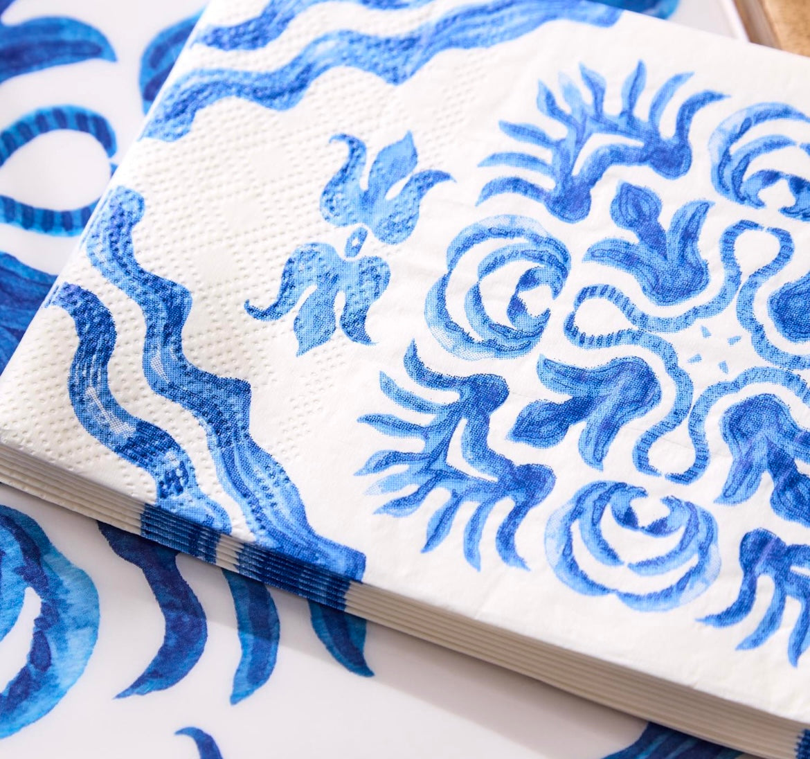 Transform your dining experience with these Blue Tile Block Print Dinner Napkins. Crafted from high-quality 3-ply paper, these elegant napkins feature a captivating blue tile design that adds a touch of sophistication to any table setting. Each pack includes 20 napkins, making them perfect for entertaining guests or adding a pop of color to your everyday meals. Elevate your table decor with these stylish and functional napkins.