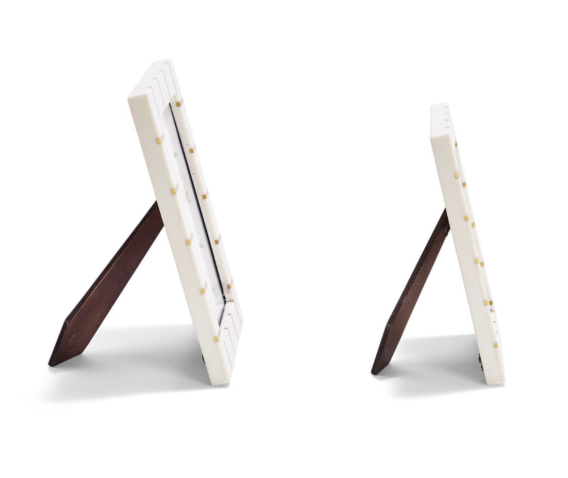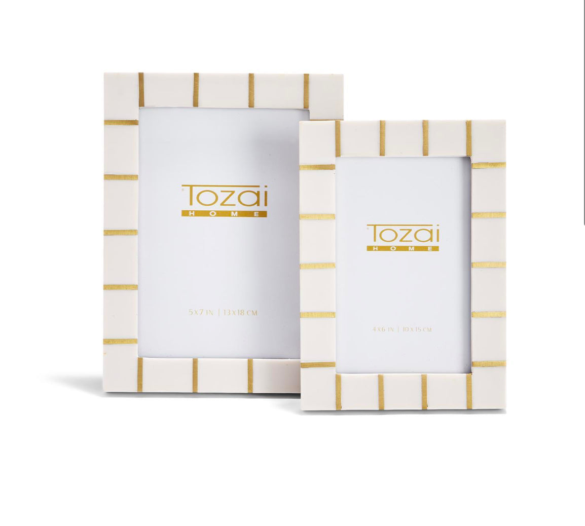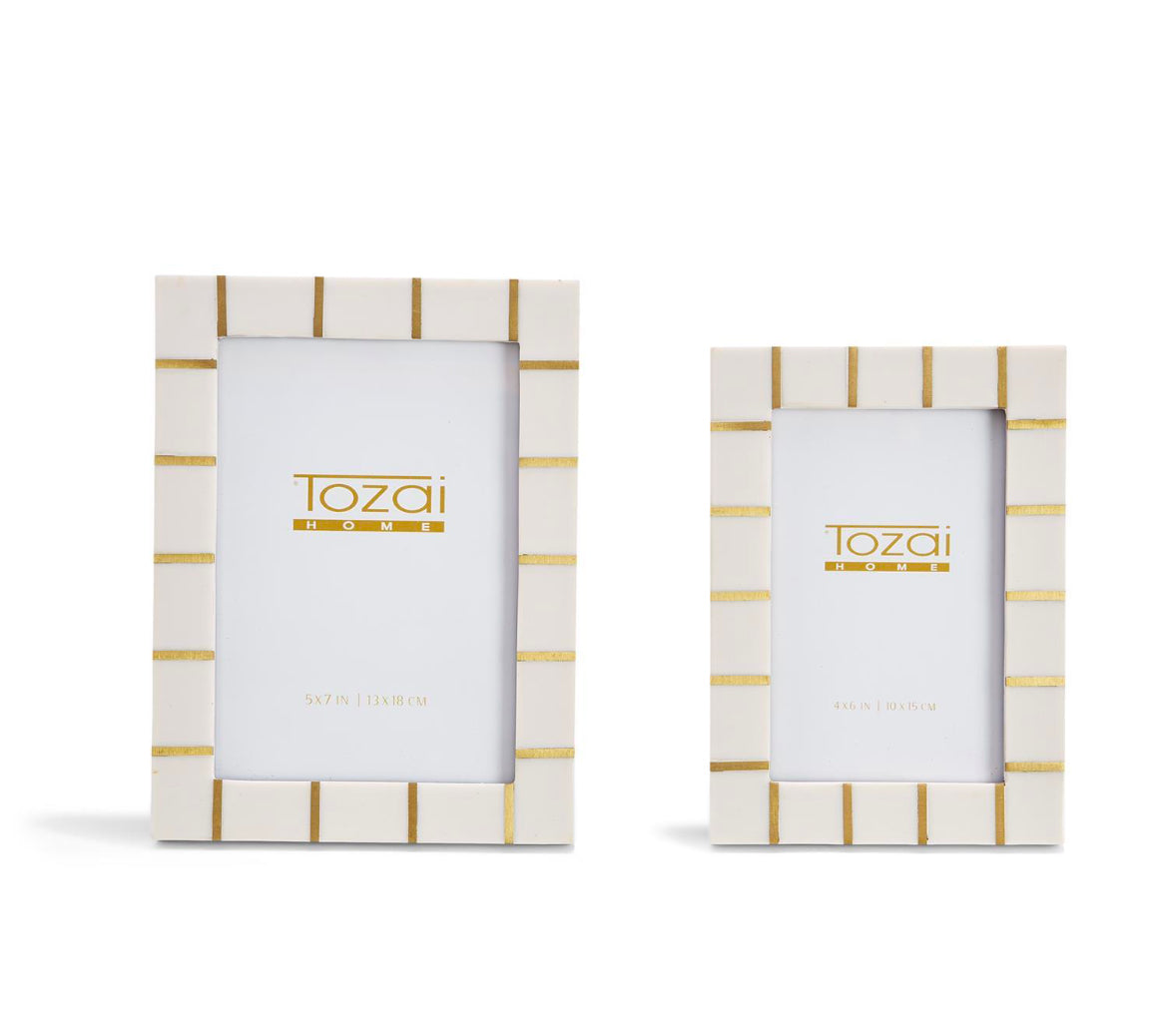 This timeless frame will hold your favorite memories in style forever. Crafted in resin with gold metal finishes this is a beautiful frame that can fit into almost any environment.