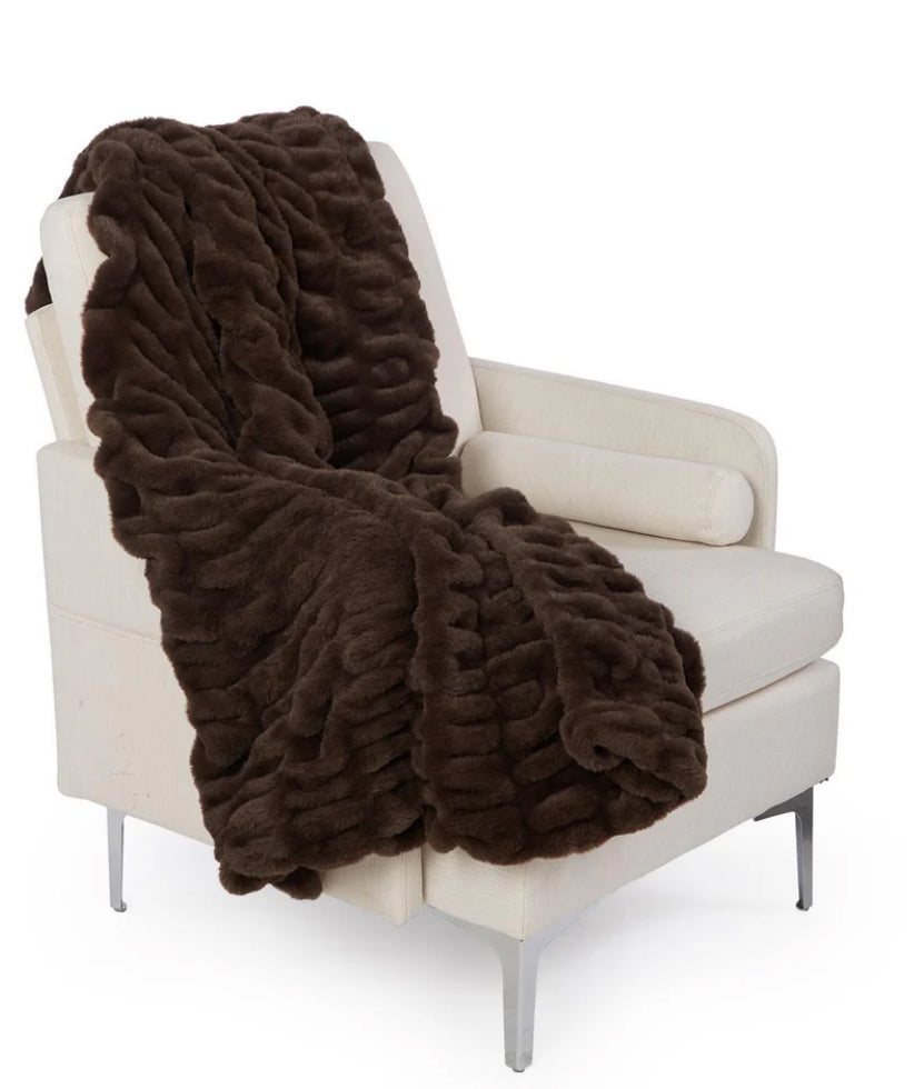 Indulge in the ultimate cozy luxury with our Espresso Brown Luxe Textured Faux Fur Throw. Crafted in a rich, dark brown hue, this polyester throw adds an elegant touch to any room. Handmade with care, this throw is perfect for snuggling up on chilly evenings or draping over your favorite armchair for a touch of sophistication. Elevate your space with this plush accent piece that exudes both style and comfort.