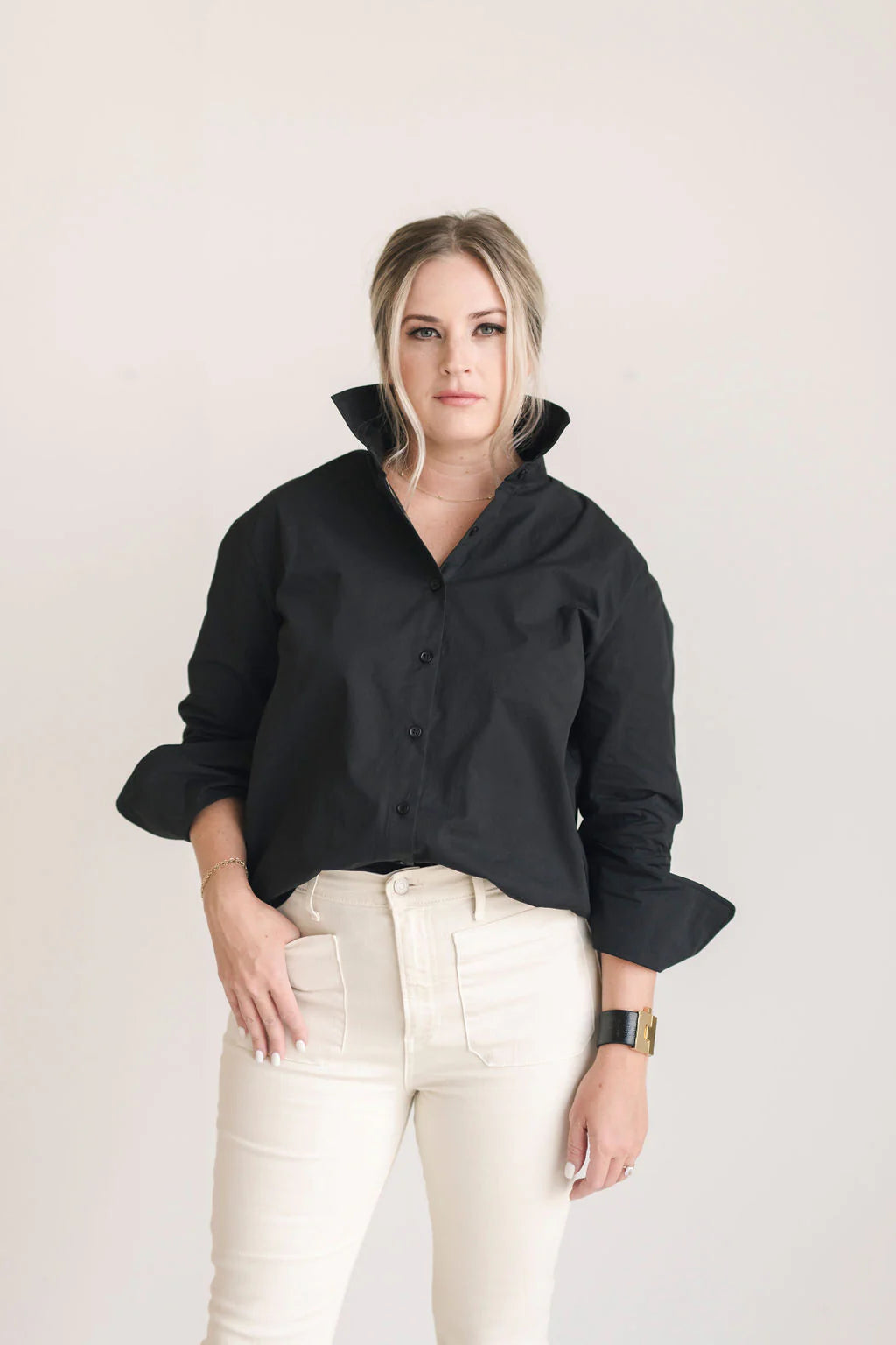 Say hello to your new wardrobe hero: The Black Crisp Button-Down Shirt! It's sleek, sophisticated, and just the right amount of sass.