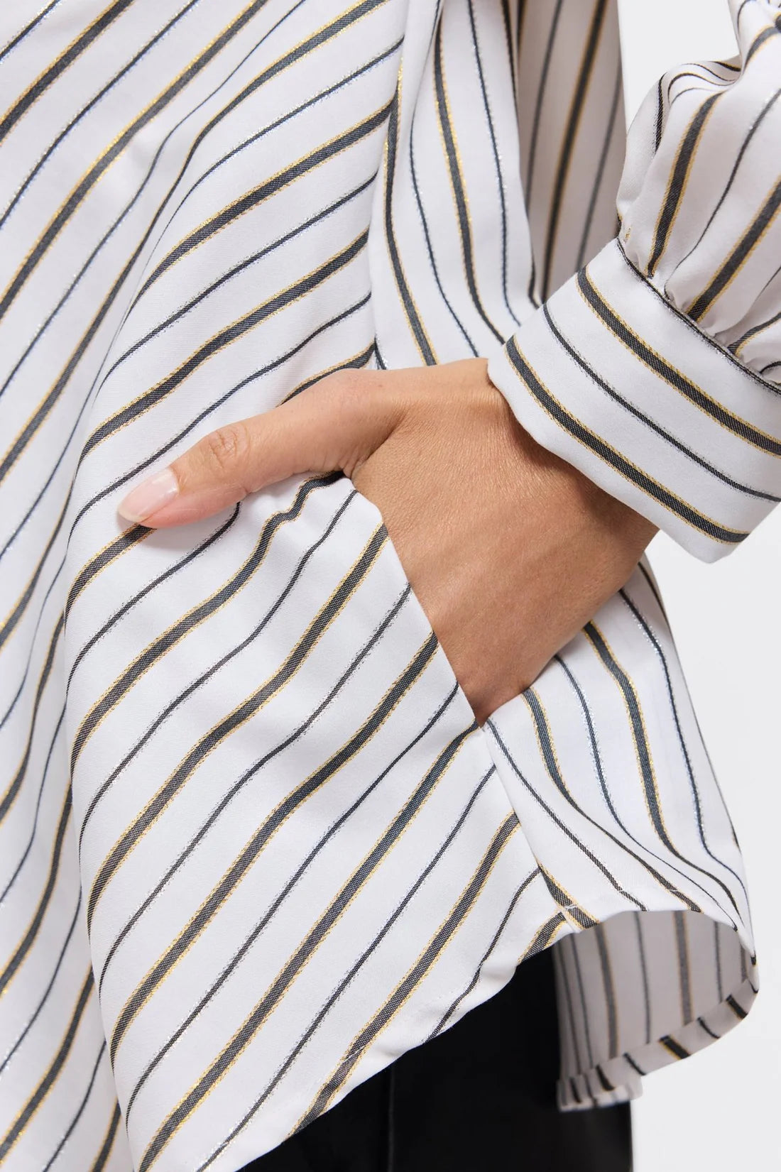 Daphne Metallic Stripe Long Sleeve Popover Shirt