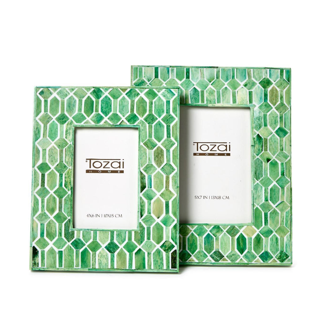 Hand Inlaid Photo Frames. Crafted with a meticulous hand inlay technique and dyed in a rich emerald green color. Perfect for displaying your favorite moments, these frames come in two versatile sizes.