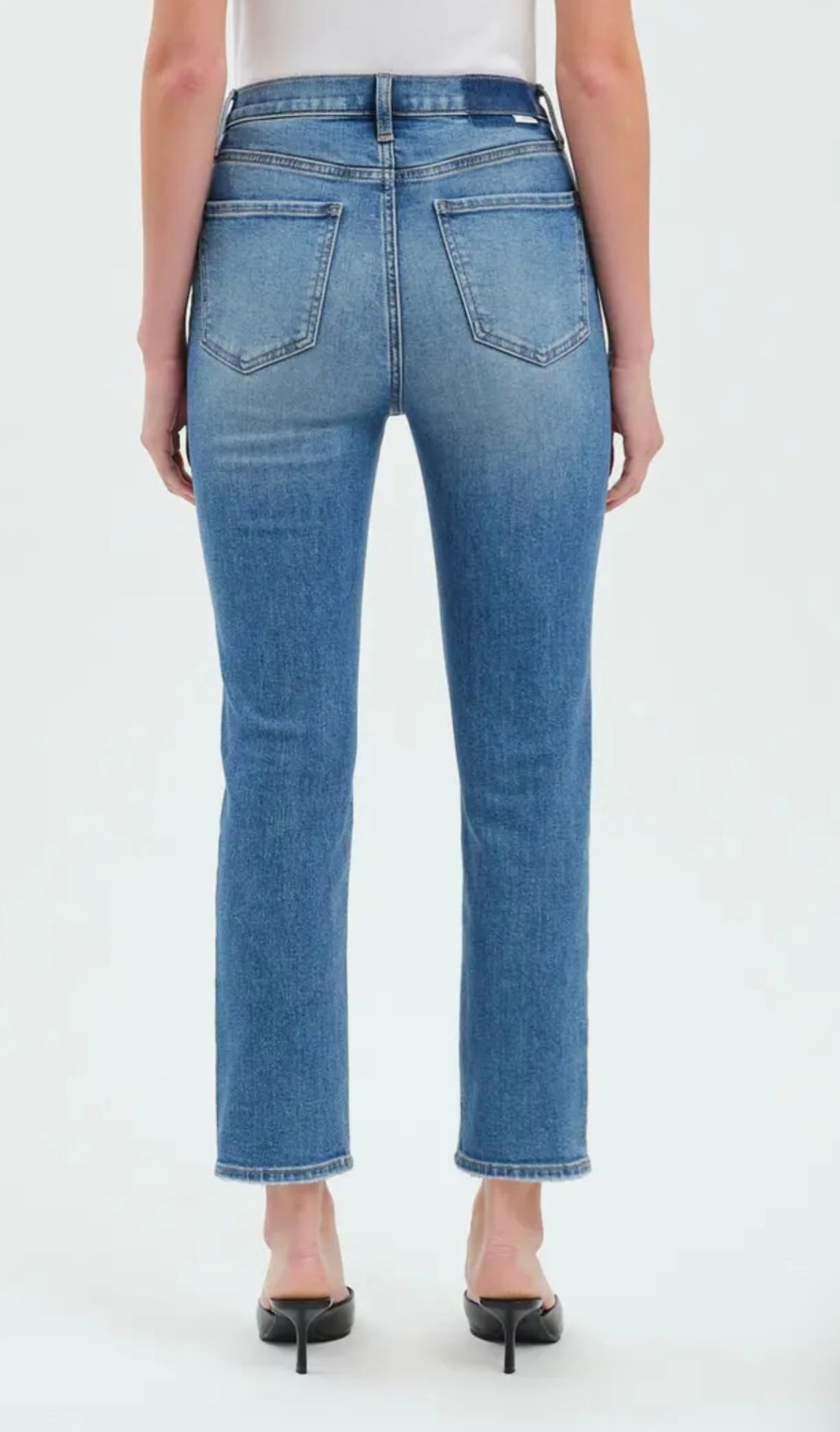 Soft and stretchy, these shapely cropped jeans are designed in a faded wash with light whiskering.
