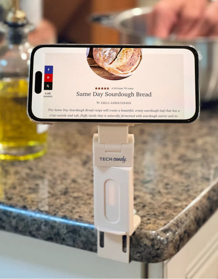 Durable iron clamp plants your phone wherever you want it. Strong intergrated magnet locks it onto the stand. Smooth 360° swivel allows you to fluidly position it how you want it.