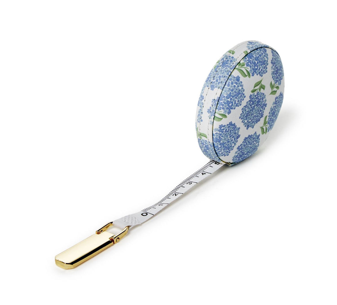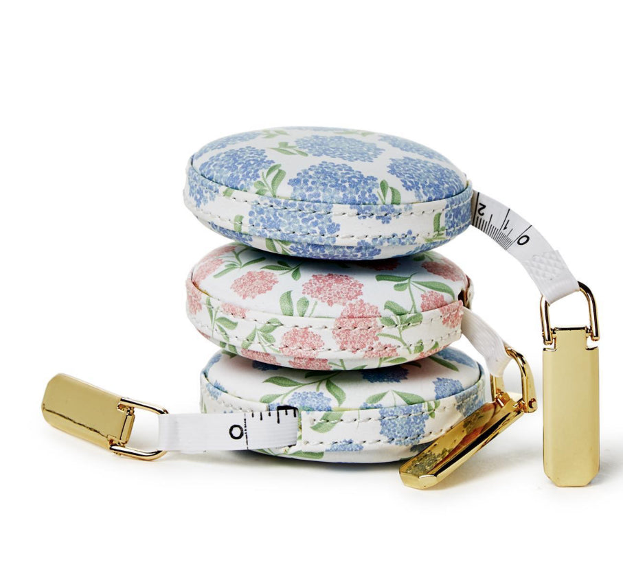 Enhance your workspace with the charming Hydrangea Print Measuring Tape. This delightful measuring tape, adorned with three assorted hydrangea designs, adds a touch of botanical beauty to your desk. Crafted from vegan leather, this measuring tape is both stylish and functional. Whether you're measuring fabrics for sewing projects or simply adding a whimsical touch to your office, this measuring tape is a must-have accessory.