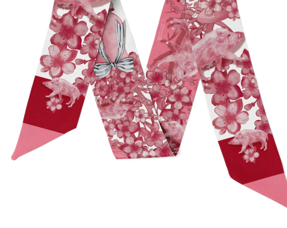 The delicate, silky fabric lends an elegant, luxurious feel, while the playful hog motif adds a touch of countryside charm and personality. Wrap it around your neck, tie it to your handbag, or get creative with countless other styling options - this scarflette is a stylish way to showcase your love for nature-inspired design wherever you go.