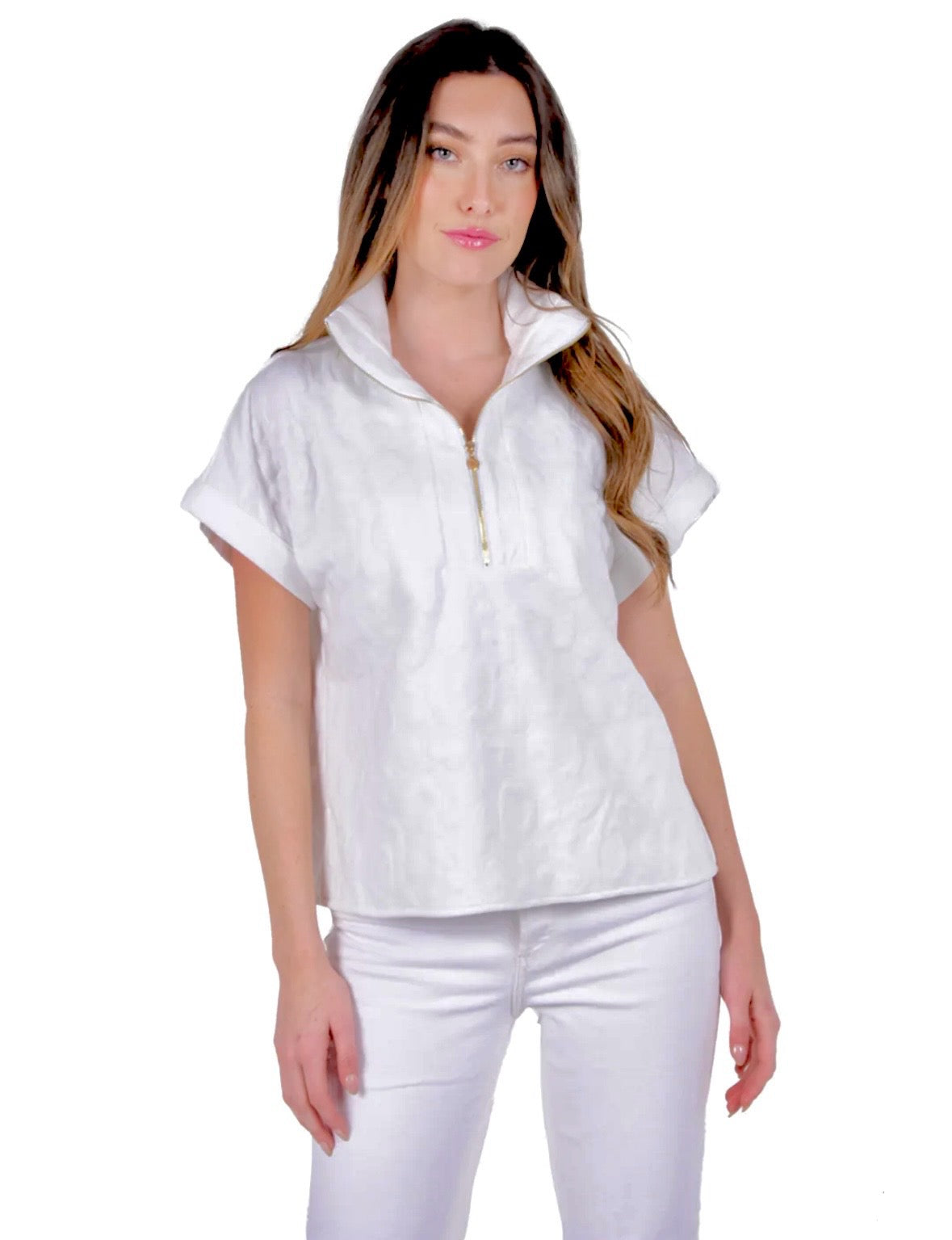 The Poppy Pullover is one of our new, most popular styles, with everything you love about the Poppy reimagined in a 3/4 zip with a trimmed and tailored look. Crisp, cool and a completion to any look, the Poppy Pullover exudes everyday style featuring short dolman style sleeve