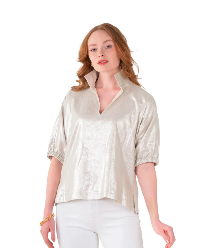 Designed to effortlessly elevate your everyday style, this top features a classic popped collar, elastic dolman sleeves, and relaxed silhouette. Crafted in Emily McCarthy's best selling cotton poplin fabric most loved for its blend of casual comfort and refined versatility.