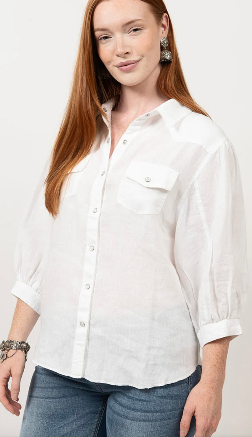 Snap Front Linen Shirt - White