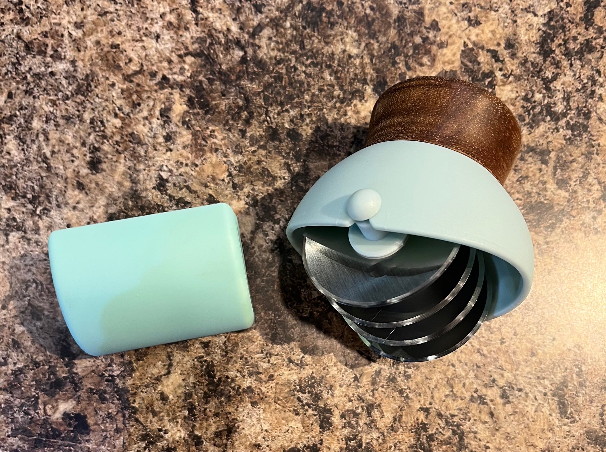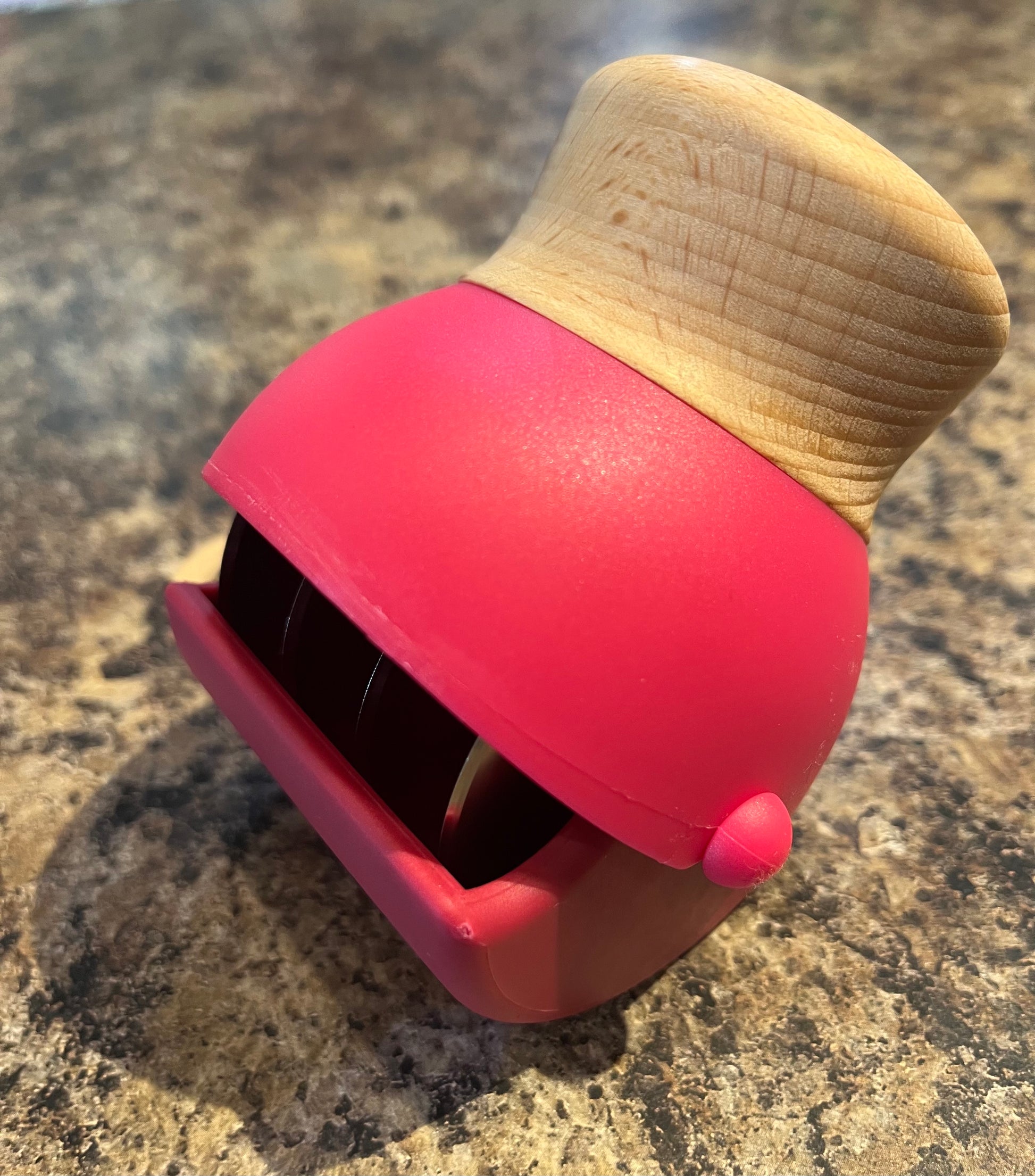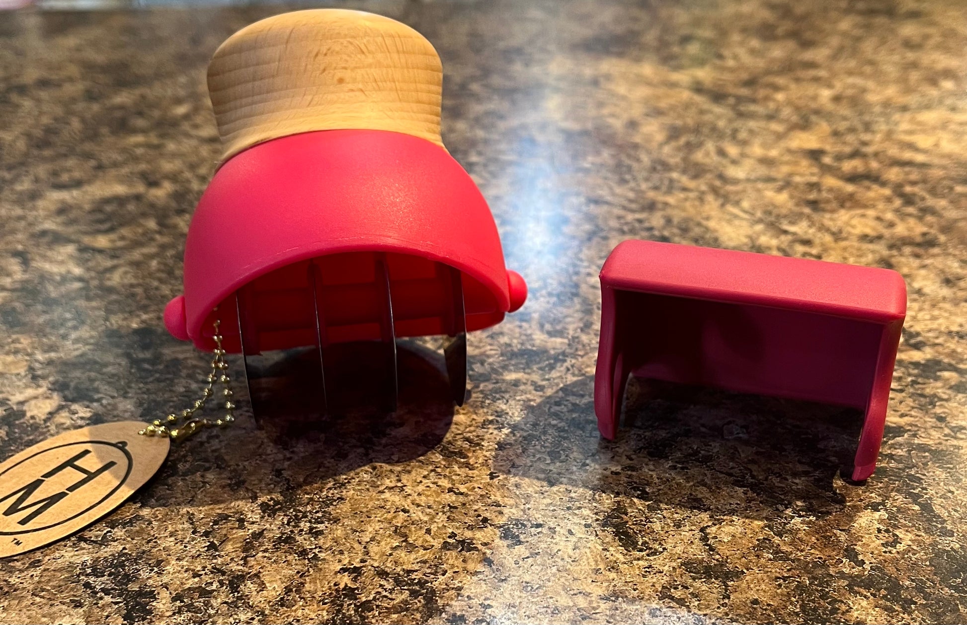 Plastic & stainless steel. 3-3/4”L. Light blue or hot pink. Plastic cover.