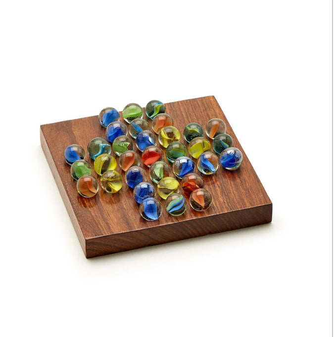 - Box includes X's and O's for tic tac toe and marbles for solitaire