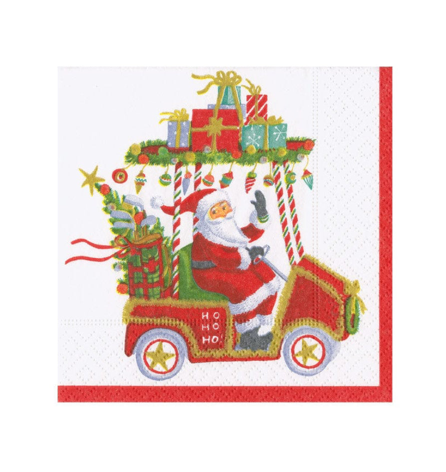 Santa’s Golf Cart Cocktail Napkins-40 ct