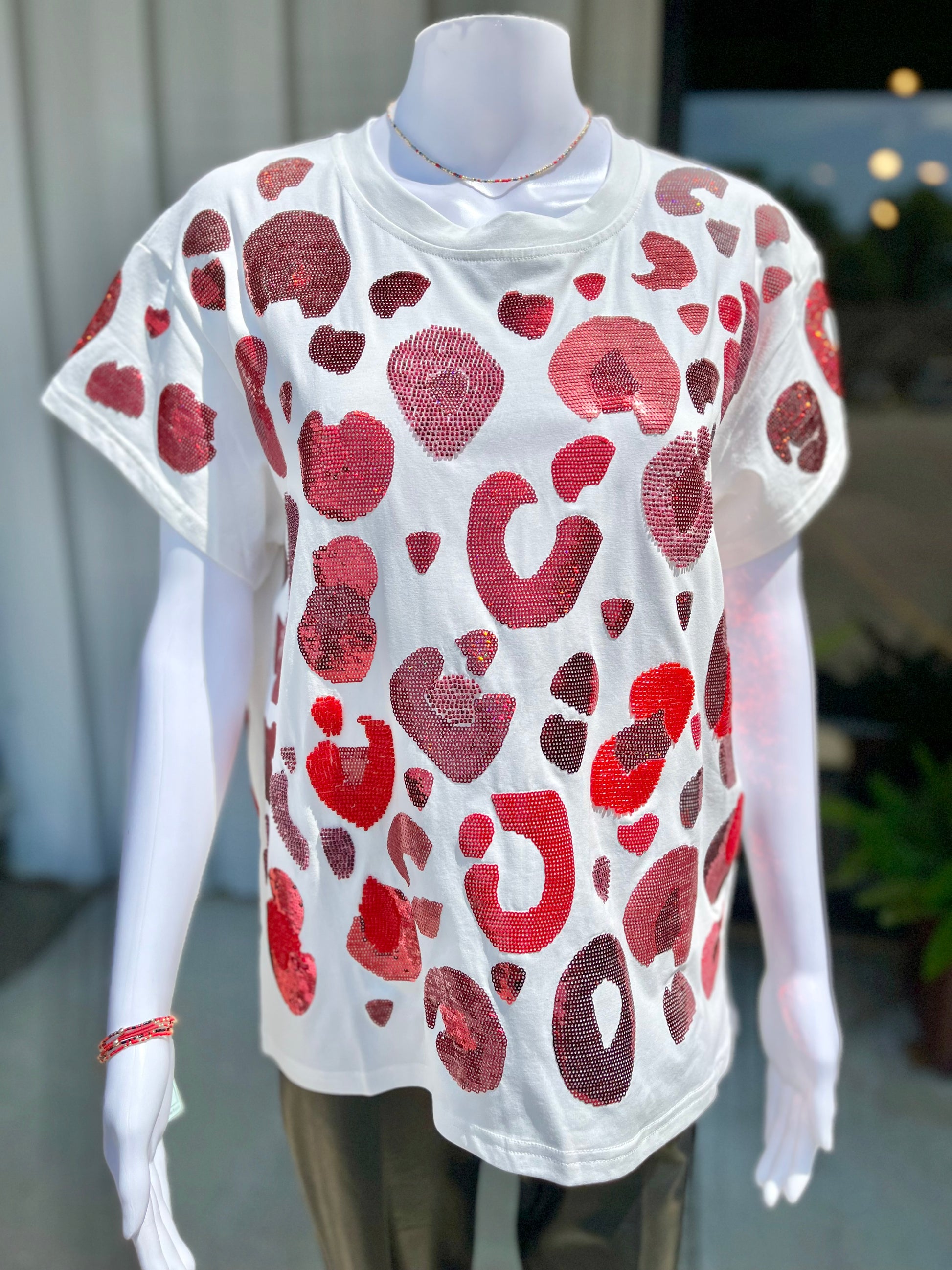 Meet our classic tee, complete with a sequin leopard design. Get ready to roar (in style)!