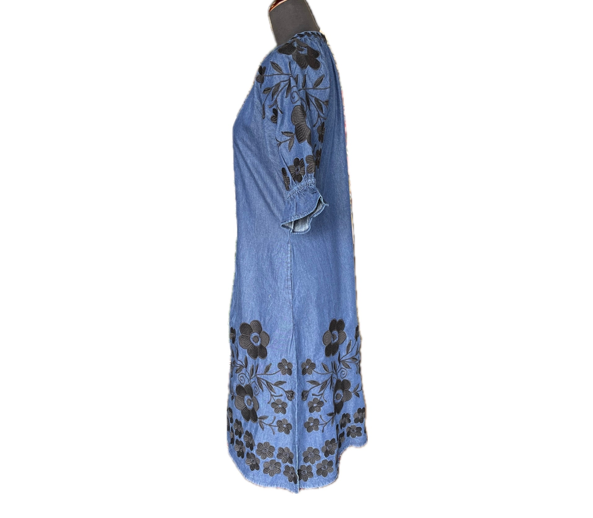 Vati Embroidered Dress-Denim